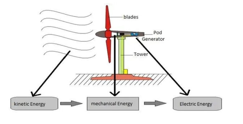 - Blades spin when wind blows, creating lift and drag due to air pressure difference.