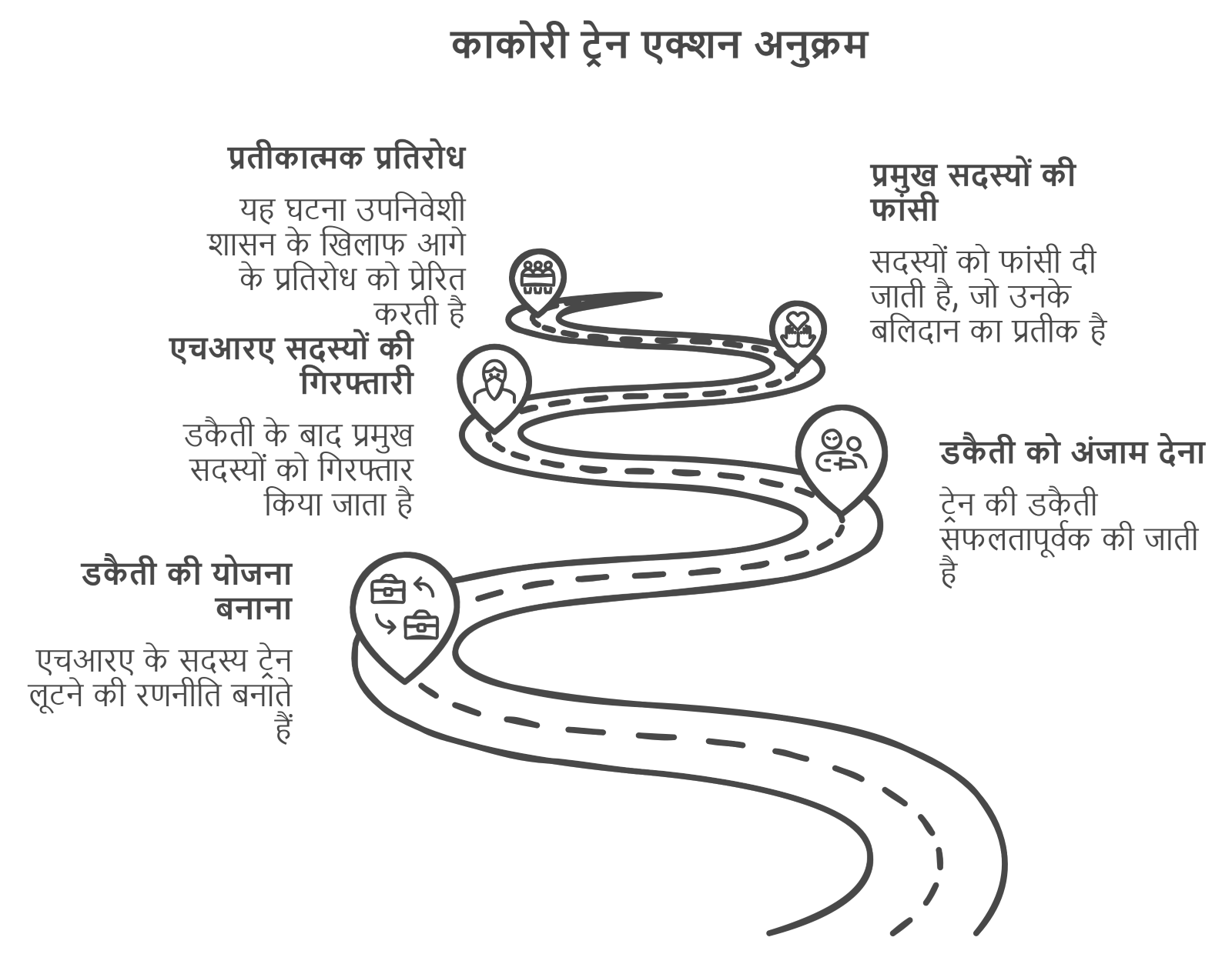- यह ब्रिटिश शासन के विरुद्ध एक साहसी कार्य था, जिसे हिंदुस्तान रिपब्लिकन एसोसिएशन (HRA) ने 9 अगस्त, 1925 को लखनऊ, उत्तर प्रदेश के निकट अंजाम दिया था।
